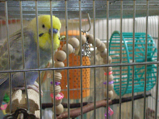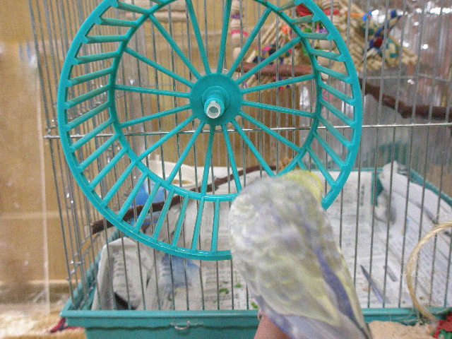 当店のおもちゃで遊んでくれているボタンインコさんの写真を送って頂きました。