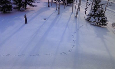 と、よく見ると、雪の上に動物の足跡がついていました。